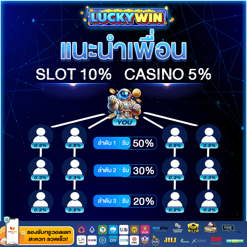 เพียงชวนเพื่อนมาสมัครเล่นผ่านลิงก์แนะนำของคุณ (Luckywin 898wind net หรือลิงก์ของคุณเอง) รับทันทีค่าคอมมิชชั่นจากยอดเล่นของเพื่อนตลอดชีพ! ยิ่งเพื่อนเล่น Luckywin game มาก คุณก็ยิ่งได้มาก สร้างรายได้ Passive Income ง่ายๆ แบบไม่ต้องลงทุนกับ Luckywin Affiliate